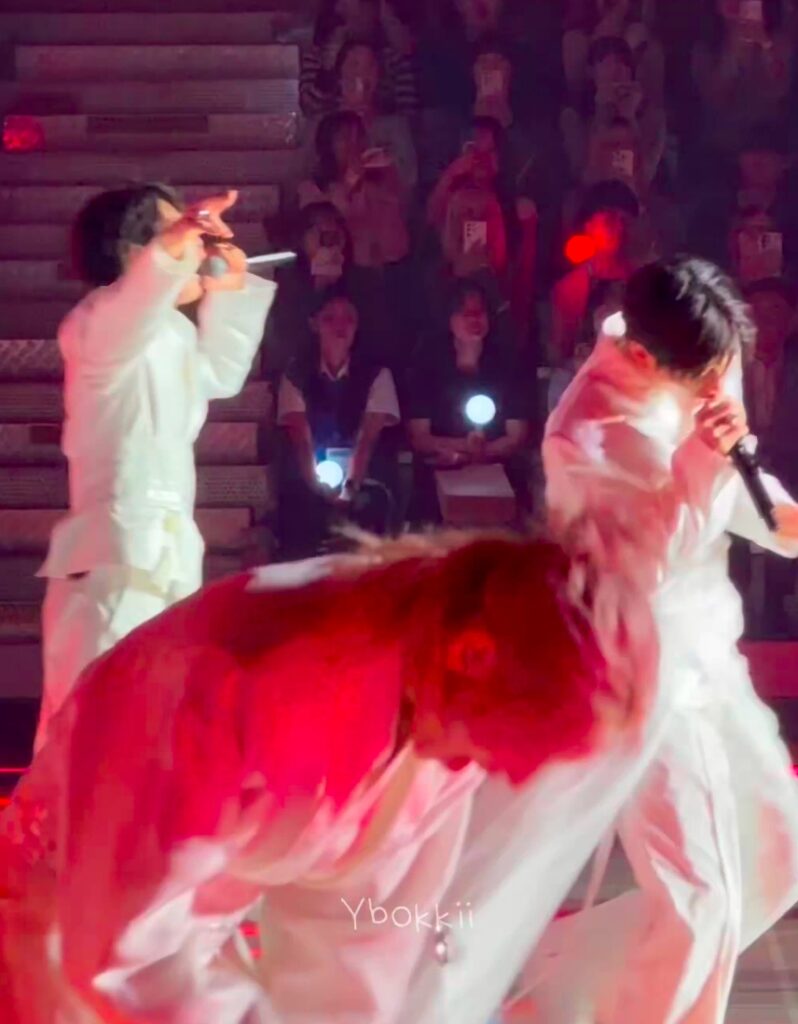 最近行われた「大衆文化交流委員会の発足式」に出席中のフェリックスは、華麗なパフォーマンスの最中、観客席に座る韓国の大統領であるイ・ジェミョン(Lee Jae Myung)氏と偶然にも目が合いました。その瞬間、フェリックスはパフォーマンスを続けながらも、舞台上で丁寧にお辞儀をする姿を見せ、多くのファンやネットユーザーを感動させました。