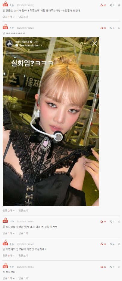 特に、韓国の掲示板サイトPannでは、彼女の投稿削除についての意見が飛び交い、賛否両論がさらにヒートアップしました。「ファンですらこの状況がどれだけ悪いかわかってないんだ」「そんな服装はイベントのテーマに合っていない」という批判的なコメントが多く見受けられます。