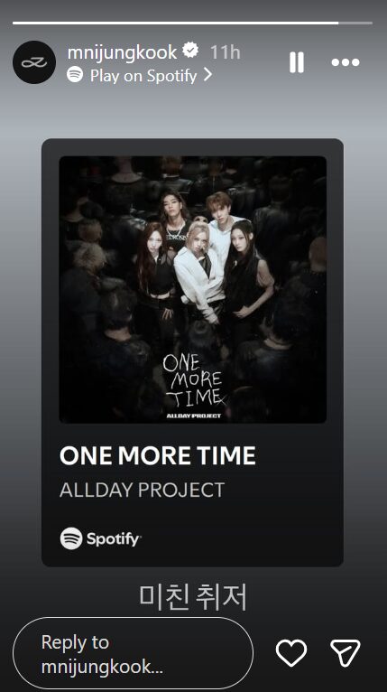 ジョングクは今年、新しいInstagramアカウントを開設し話題となりましたが、そのアカウントはこれまでほとんど投稿がない状態でした。そんな中、ALLDAY PROJECTの新曲「ONE MORE TIME」を取り上げたスクリーンショットをストーリーに投稿。その投稿にはグループのアルバムカバーが映っており、このグループに以前から賛否が巻き起こっていることも相まって、ファンの間でさらなる議論が生まれました。